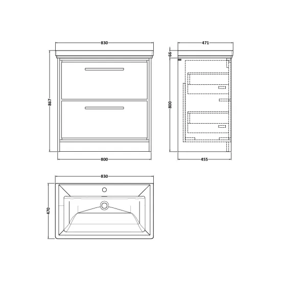 Lille 800mm Floor Standing 2-Drawer Vanity with Basin - 3 Tap Hole