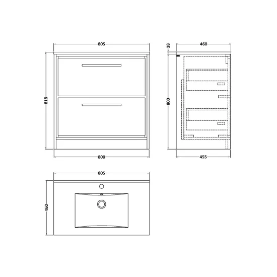 Lille 800mm Floor Standing 2-Drawer Vanity with Basin - 3 Tap Hole