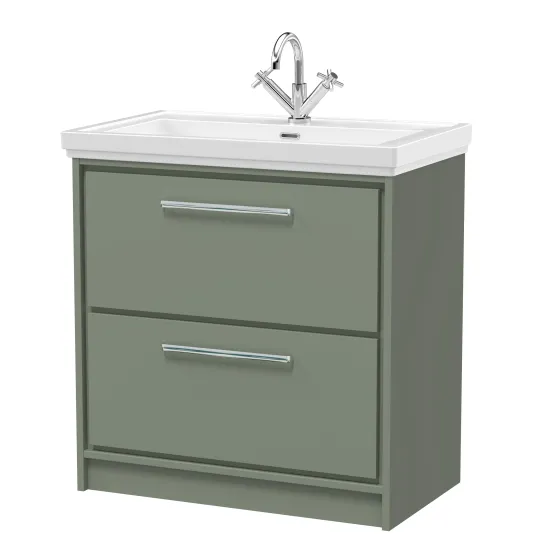 Hudson Reed Lille 800mm Floor Standing 2-Drawer Vanity with Basin - 1 Tap Hole - Fern Green
