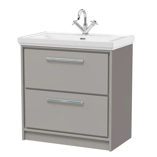Hudson Reed Lille 800mm Floor Standing 2-Drawer Vanity with Basin - 1 Tap Hole - Pebble Grey