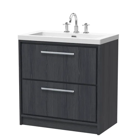 Hudson Reed Lille 800mm Floor Standing 2-Drawer Vanity with Basin - 3 Tap Hole - Graphite Grey Woodgrain