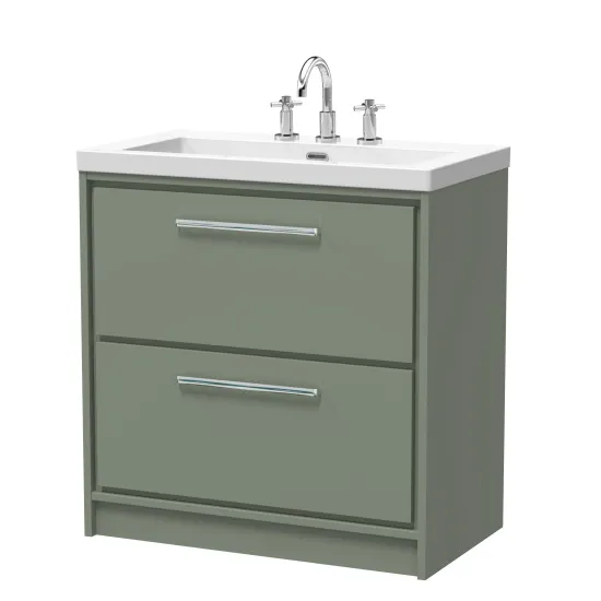 Hudson Reed Lille 800mm Floor Standing 2-Drawer Vanity with Basin - 3 Tap Hole - Fern Green