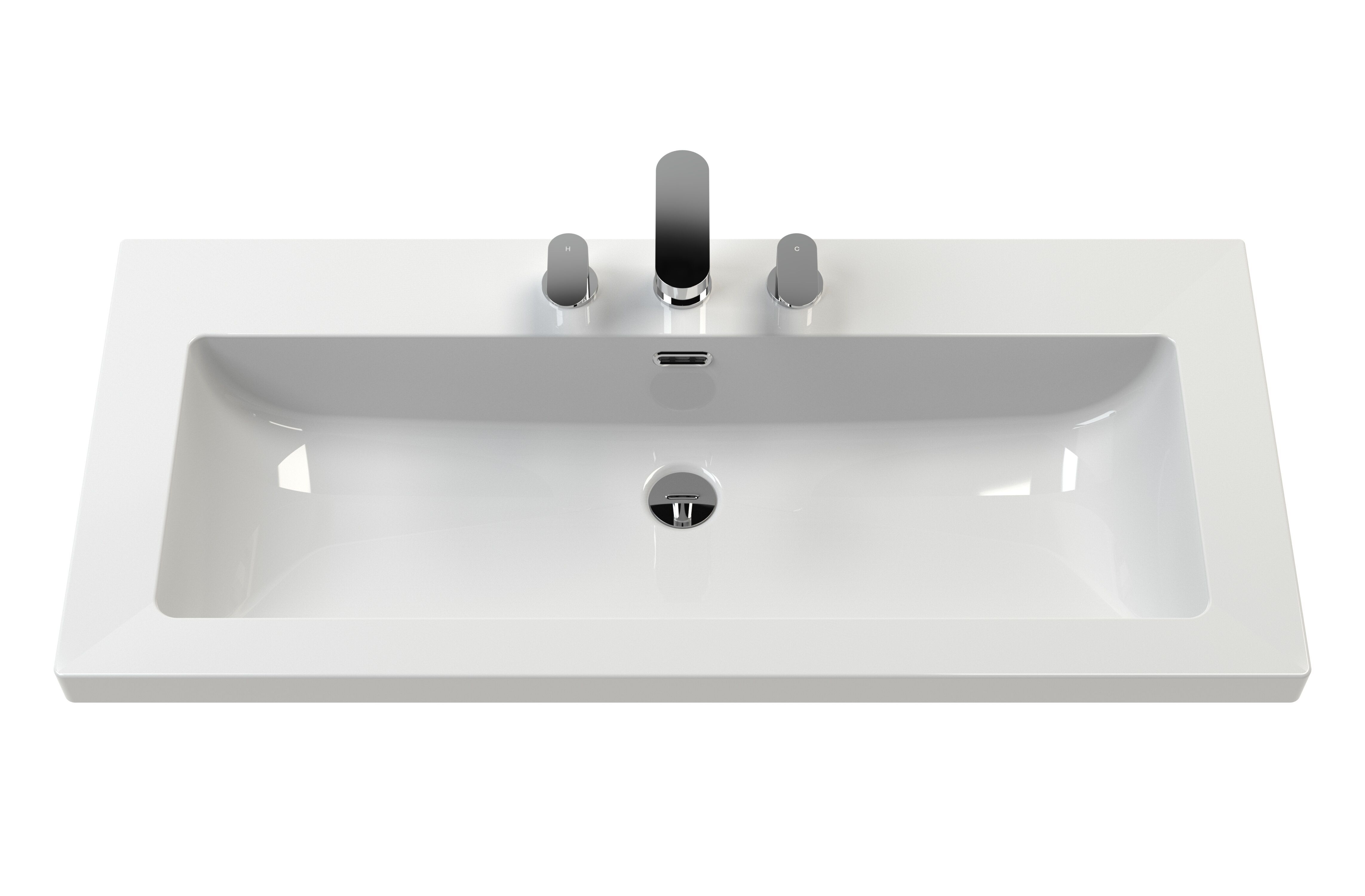 This unit is supplied with fireclay basin, pre-drilled with three tap holes.