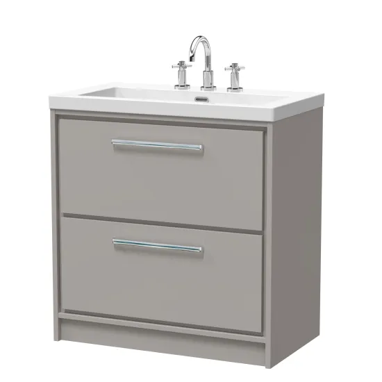 Hudson Reed Lille 800mm Floor Standing 2-Drawer Vanity with Basin - 3 Tap Hole - Pebble Grey