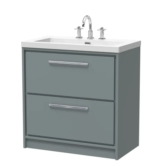 Hudson Reed Lille 800mm Floor Standing 2-Drawer Vanity with Basin - 3 Tap Hole - Coastal Grey