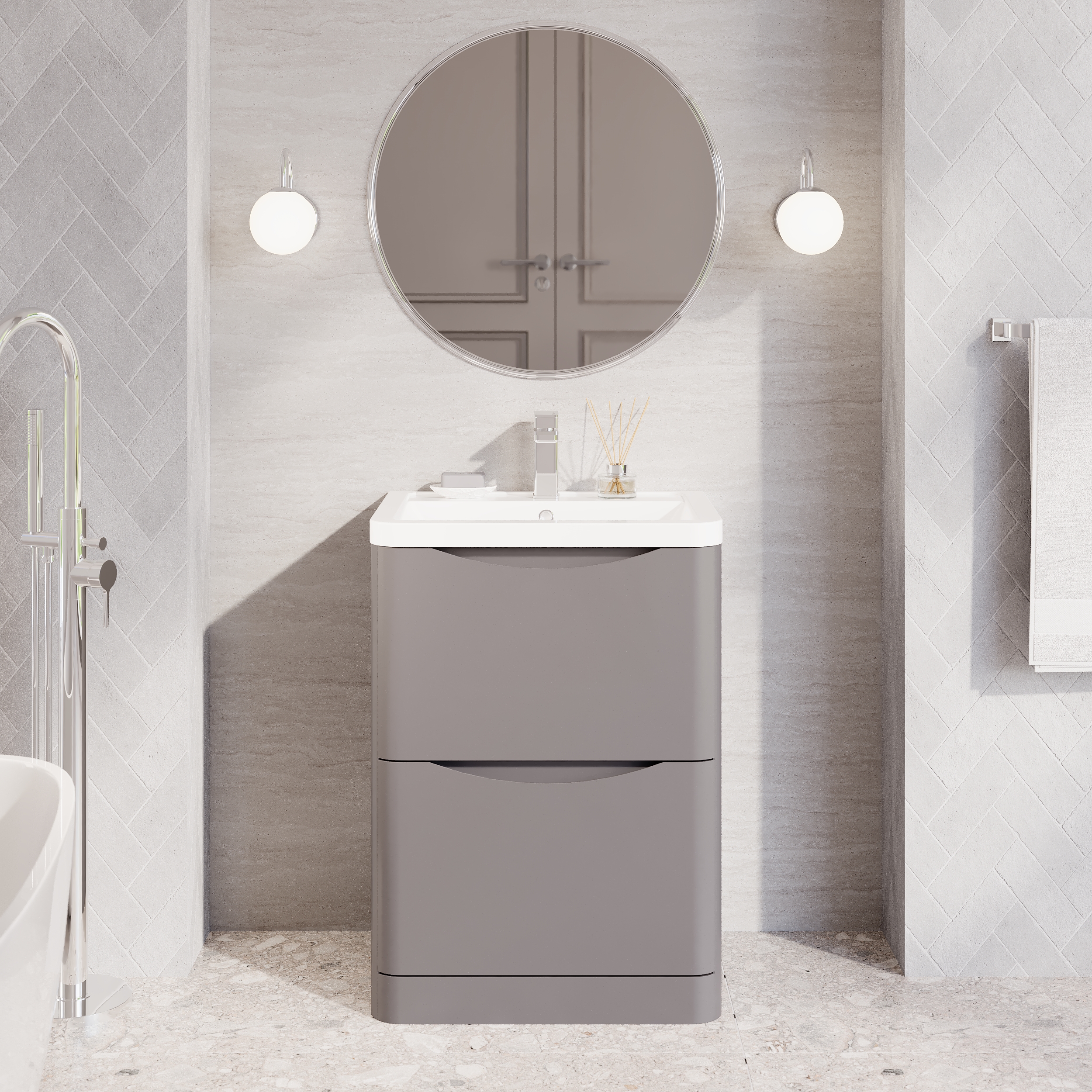 nuie Lunar Floor Standing 2 Drawer Unit & Ceramic Basin, 600mm - Satin Grey