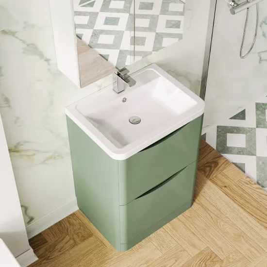 Nuie Lunar 600mm Satin Green Floor Standing 2 Drawer Vanity Unit with Basin