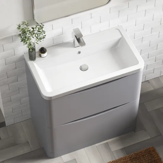Nuie Lunar 800mm Satin Grey Floor Standing 2 Drawer Vanity Unit With Polymarble Basin