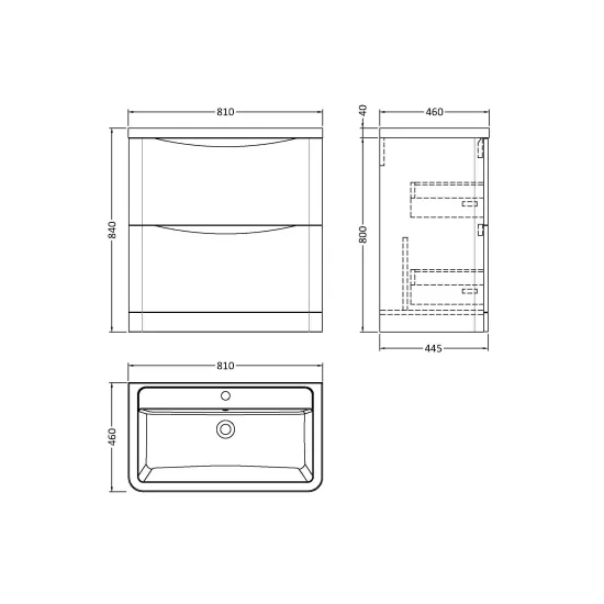 Nuie Lunar 800mm Floor Standing 2 Drawer Vanity Unit with Ceramic Basin