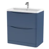 Nuie Lunar 800mm Satin Blue Floor Standing 2 Drawer Vanity Unit With Basin