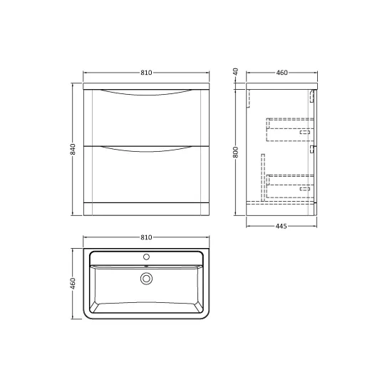 Nuie Lunar 800mm Satin White Floor Standing 2 Drawer Basin Unit