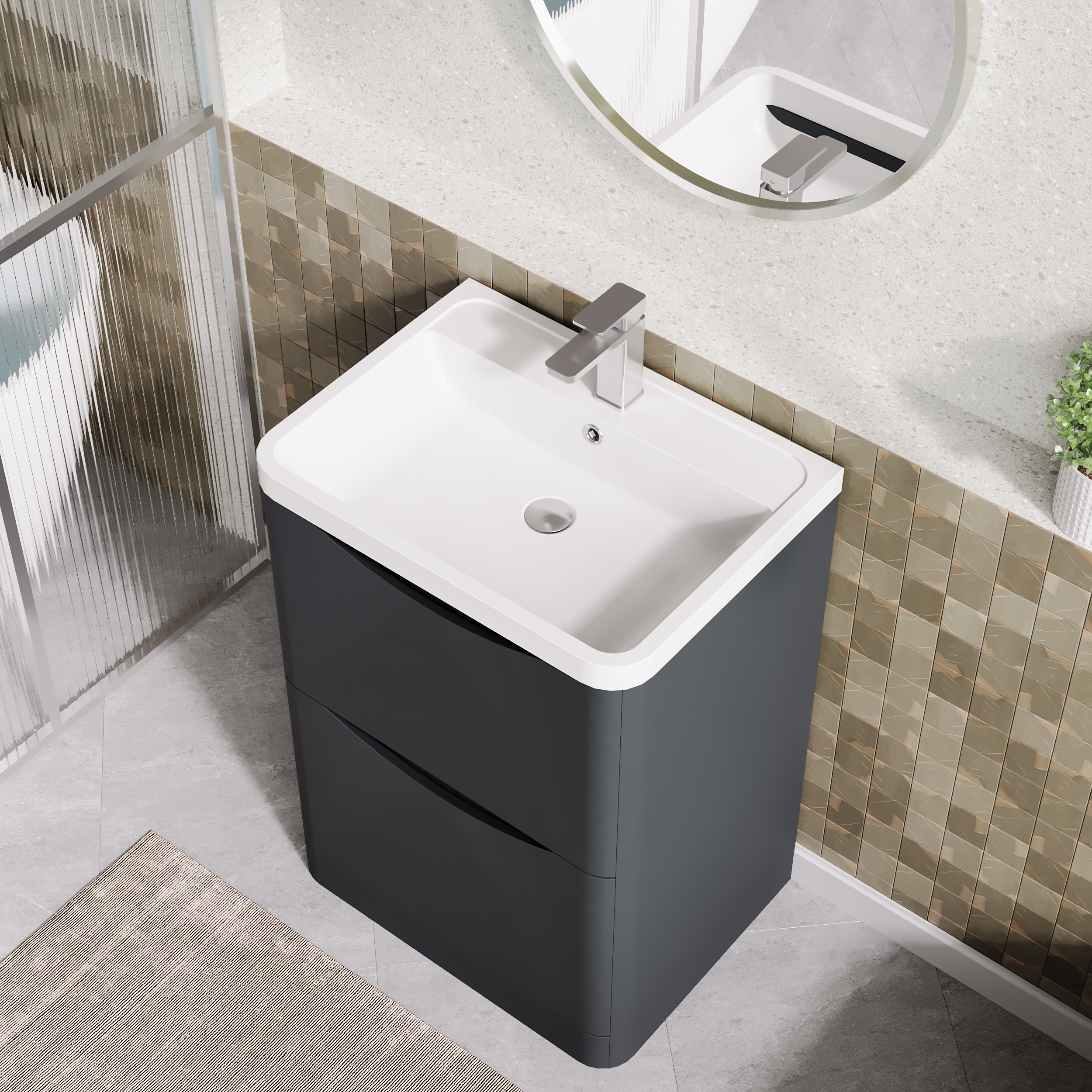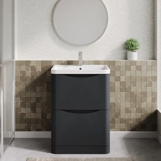 nuie Lunar Floor Standing 2 Drawer Unit & Polymarble Basin, 600mm - Soft Black