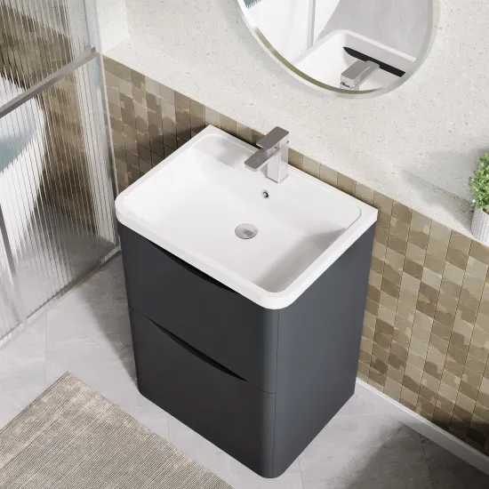 Nuie Lunar 600mm Satin Grey Floor Standing 2 Drawer Vanity Unit Including Basin