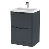 Nuie Lunar 600mm Floor Standing 2 Drawer Unit With Polymarble Basin, Soft Close