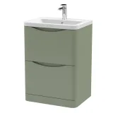 nuie Lunar Floor Standing 2 Drawer Unit & Polymarble Basin, 600mm - Satin Green