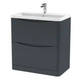 nuie Lunar Floor Standing 2 Drawer Unit & Polymarble Basin, 800mm - Satin Grey