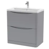 Nuie Lunar 800mm Satin Grey Floor Standing 2 Drawer Vanity Unit With 1 Tap Hole Basin