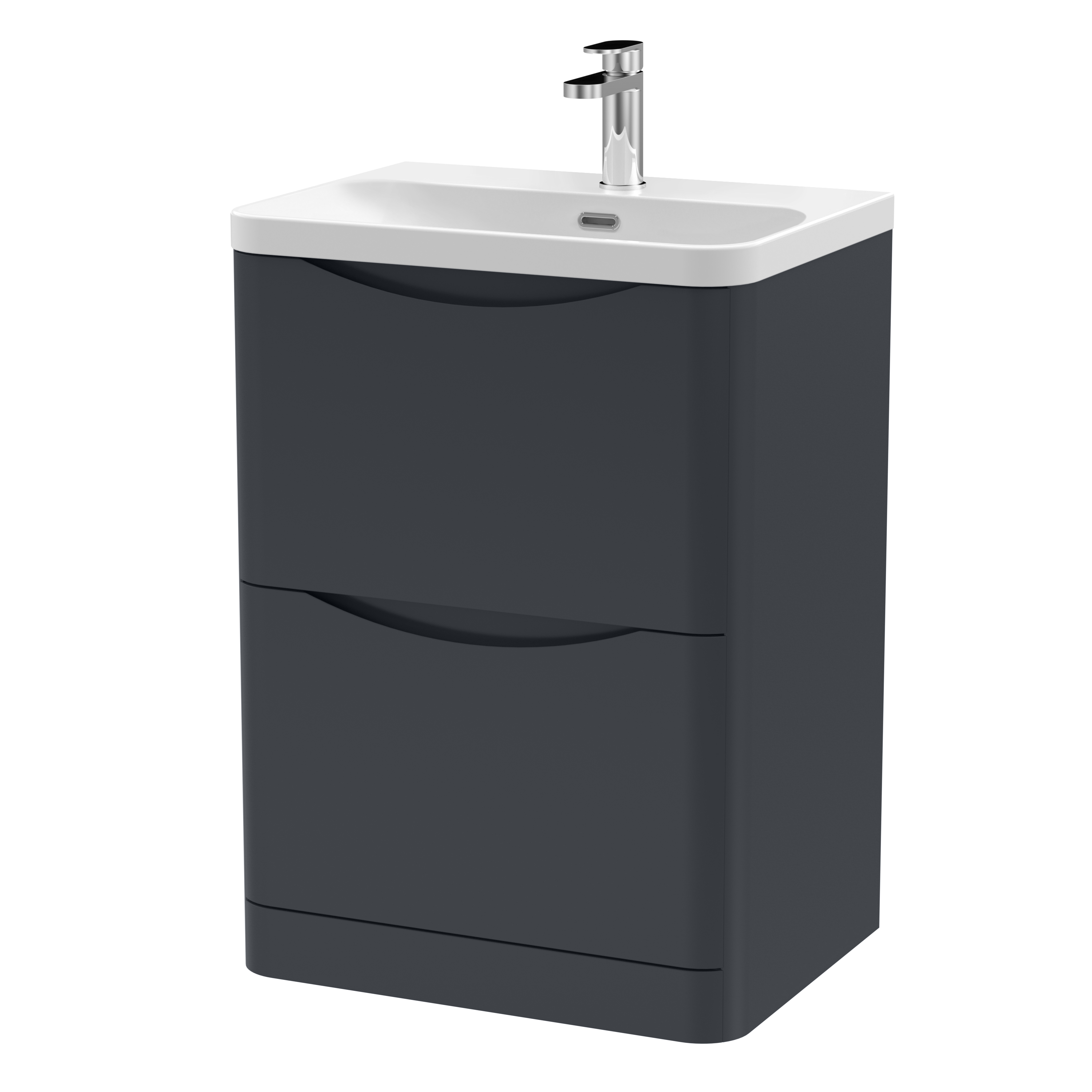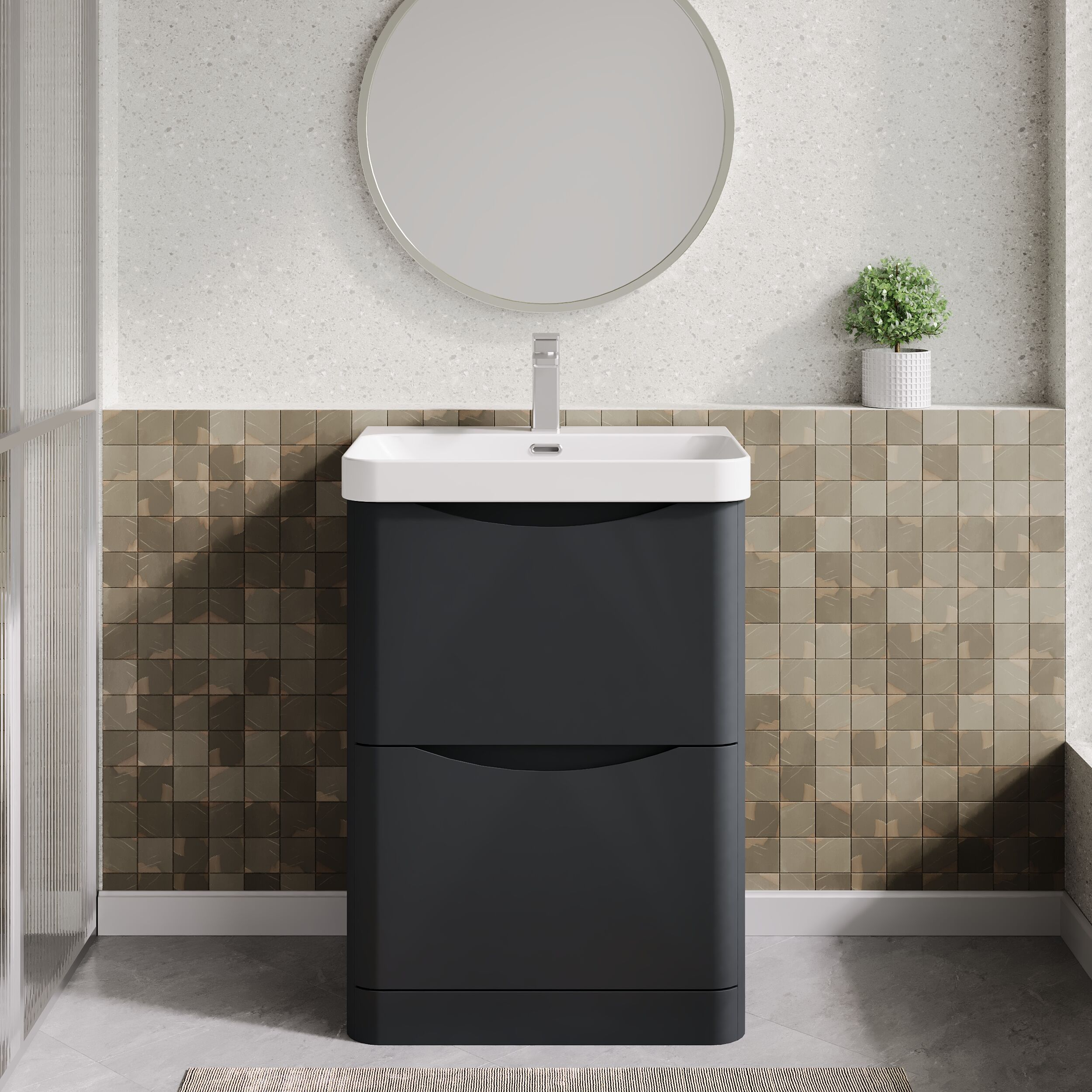 nuie Lunar Floor Standing 2 Drawer Unit & Thin Edge Ceramic Basin, 600mm - Soft Black