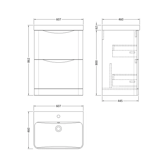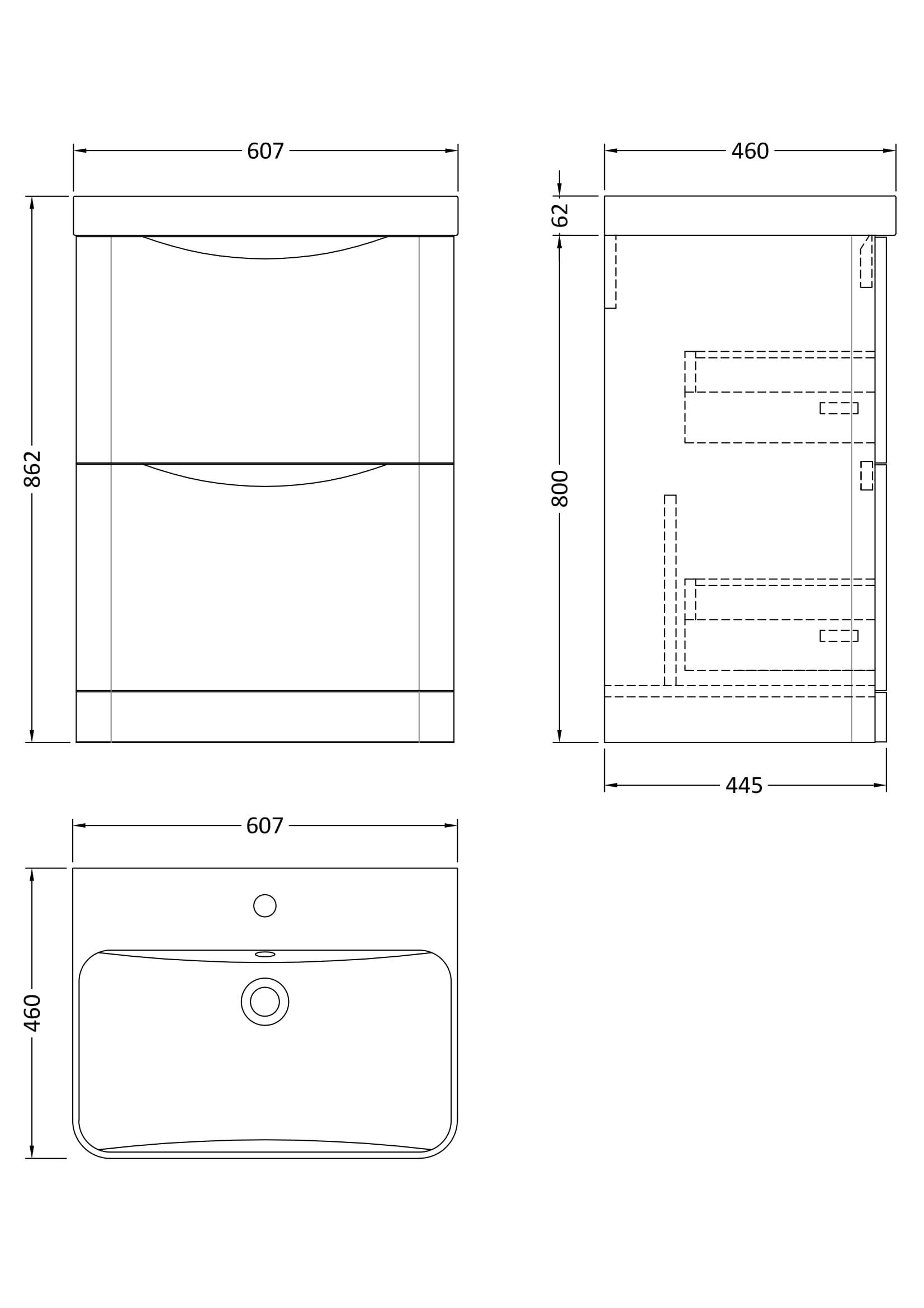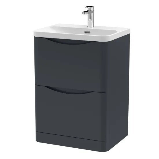 Nuie Lunar 600mm Floor Standing 2 Drawer Vanity Unit with Soft Close Drawers & Ceramic Basin