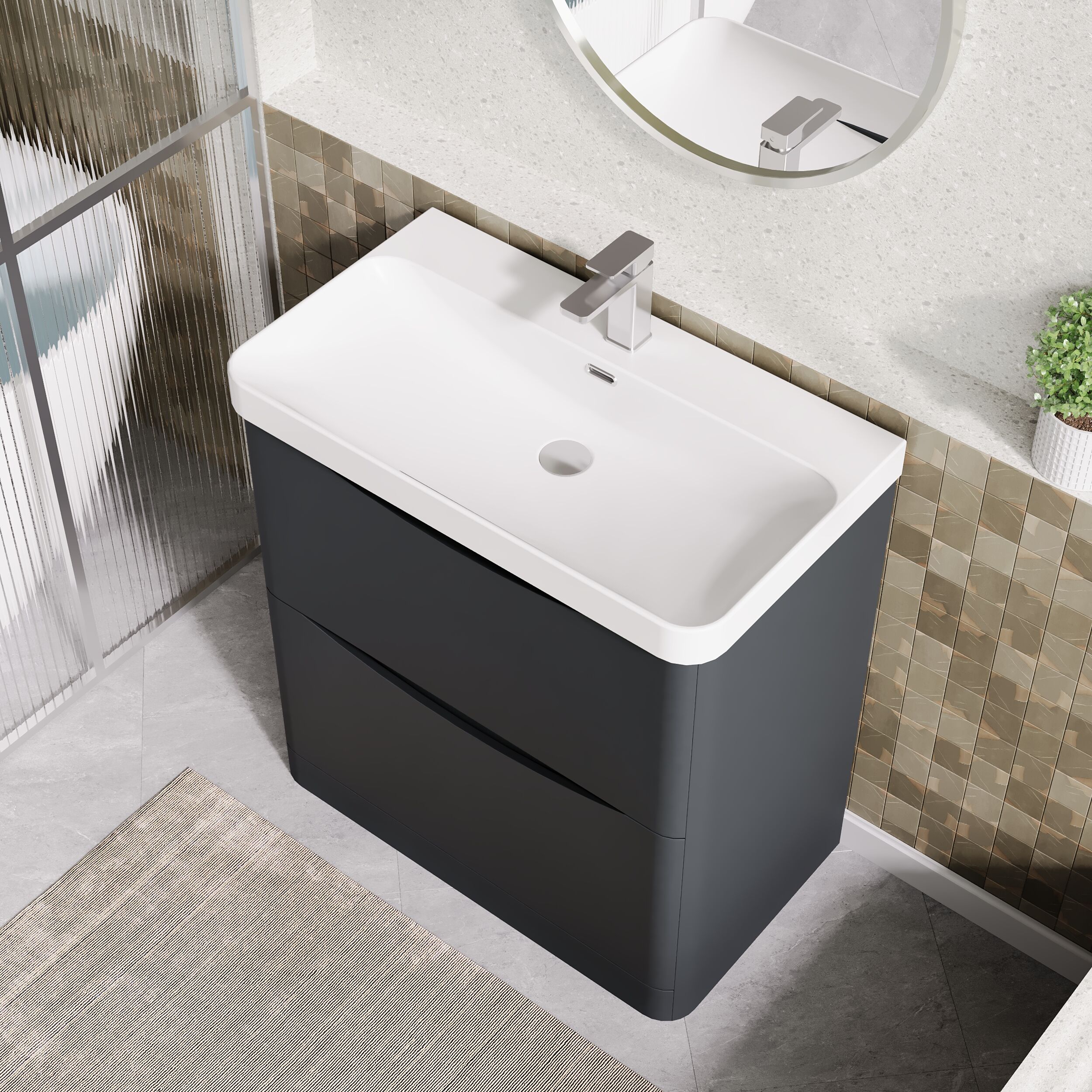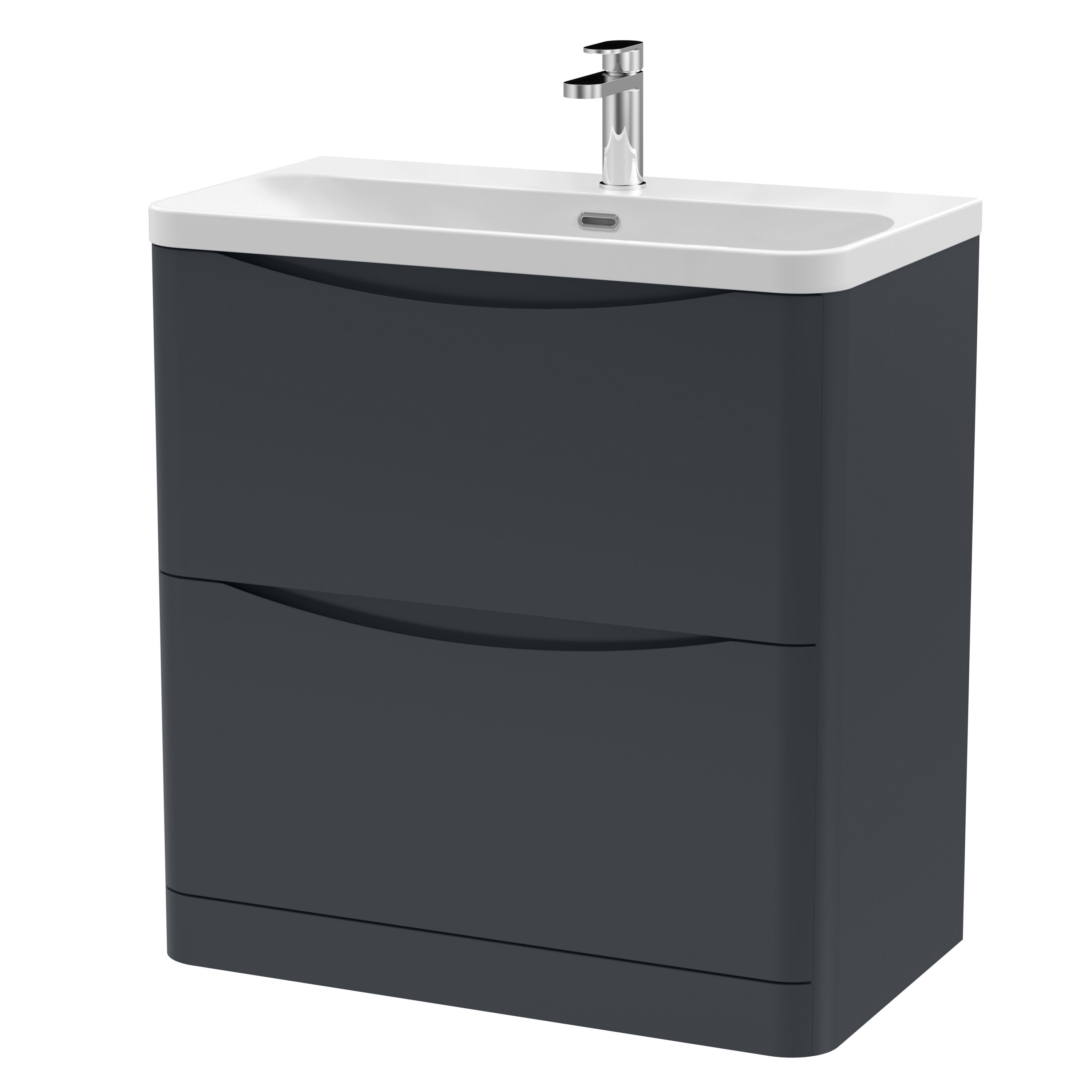 Nuie Lunar 800mm Floor Standing 2 Drawer Vanity Unit With Ceramic Basin