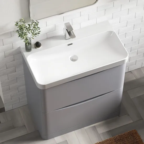 Nuie Lunar 800mm Satin Grey Floor Standing 2 Drawer Vanity Unit With Ceramic Basin