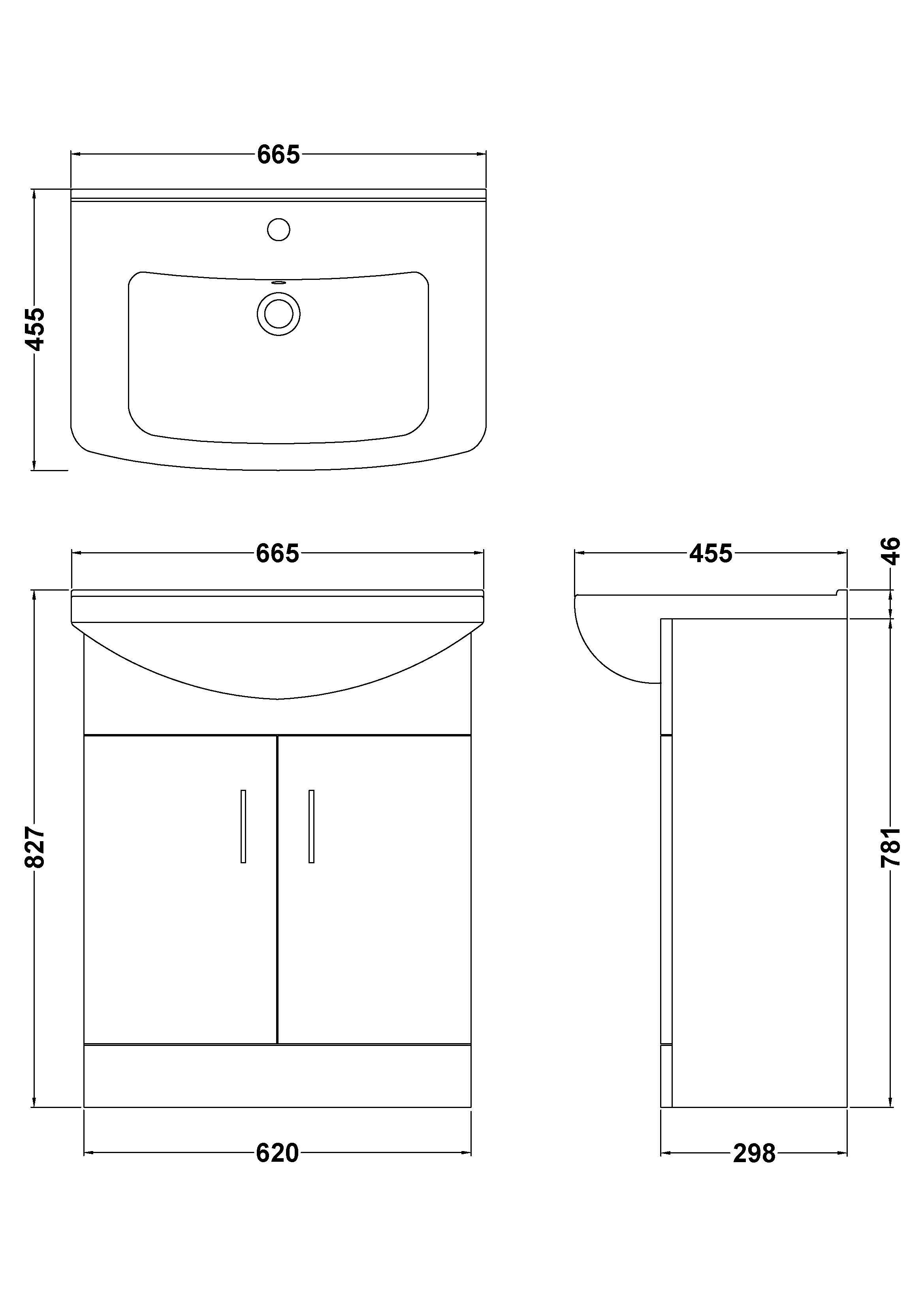 Nuie Choice Axis 650mm Floor Standing 2 Door Vanity Unit With Basin