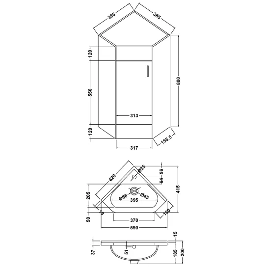 Mayford Floor Standing 2 Door Corner Vanity Unit with Ceramic Basin