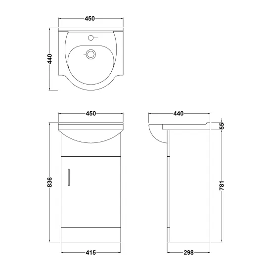 nuie choice Axis Floor Standing Single Door Vanity Unit with Round Ceramic Basin 450mm - Gloss White