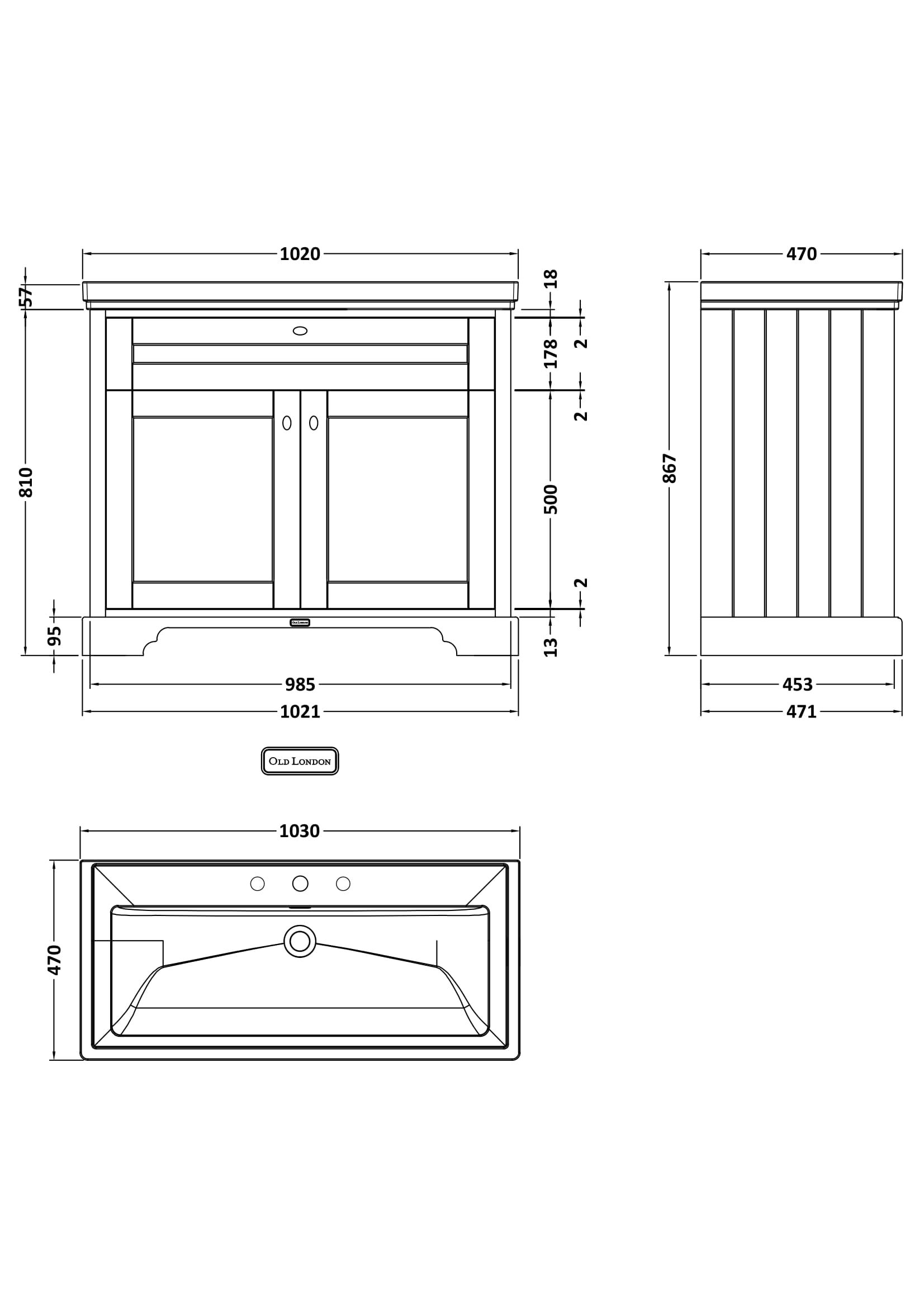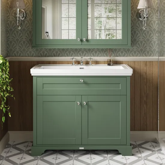 Hudson Reed Old London 1030mm Hunter Green 2-Door Floor Standing Basin Unit With 3 Taphole Fireclay Basin