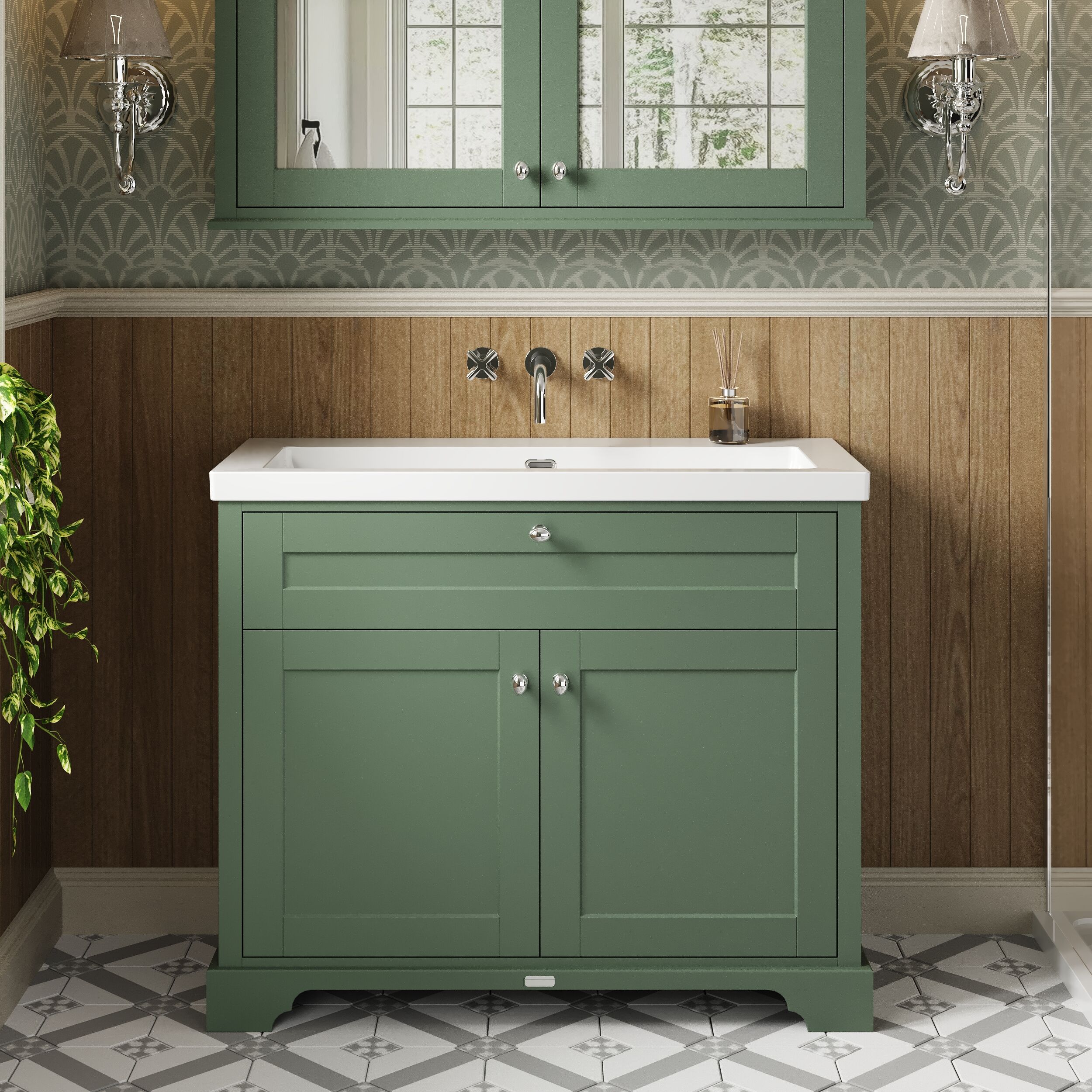 Hudson Reed Old London 1000mm 2-Door Unit & Contemporary Fireclay Basin 0TH - Hunter Green