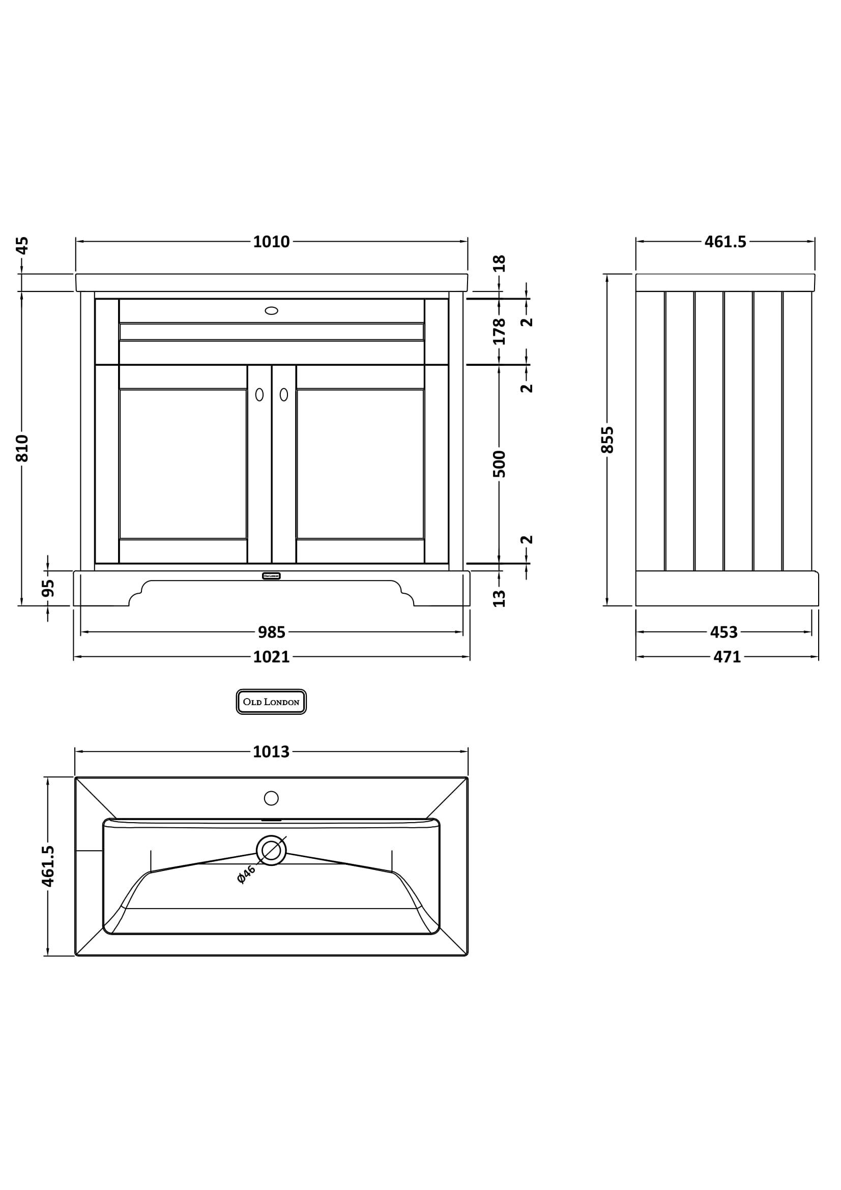 Hudson Reed Old London Hunter Green 2-Door Vanity Unit With Basin