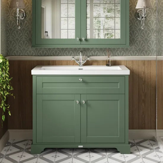 Hudson Reed Old London 1000mm 2-Door Unit & Contemporary Fireclay Basin 1TH - Hunter Green