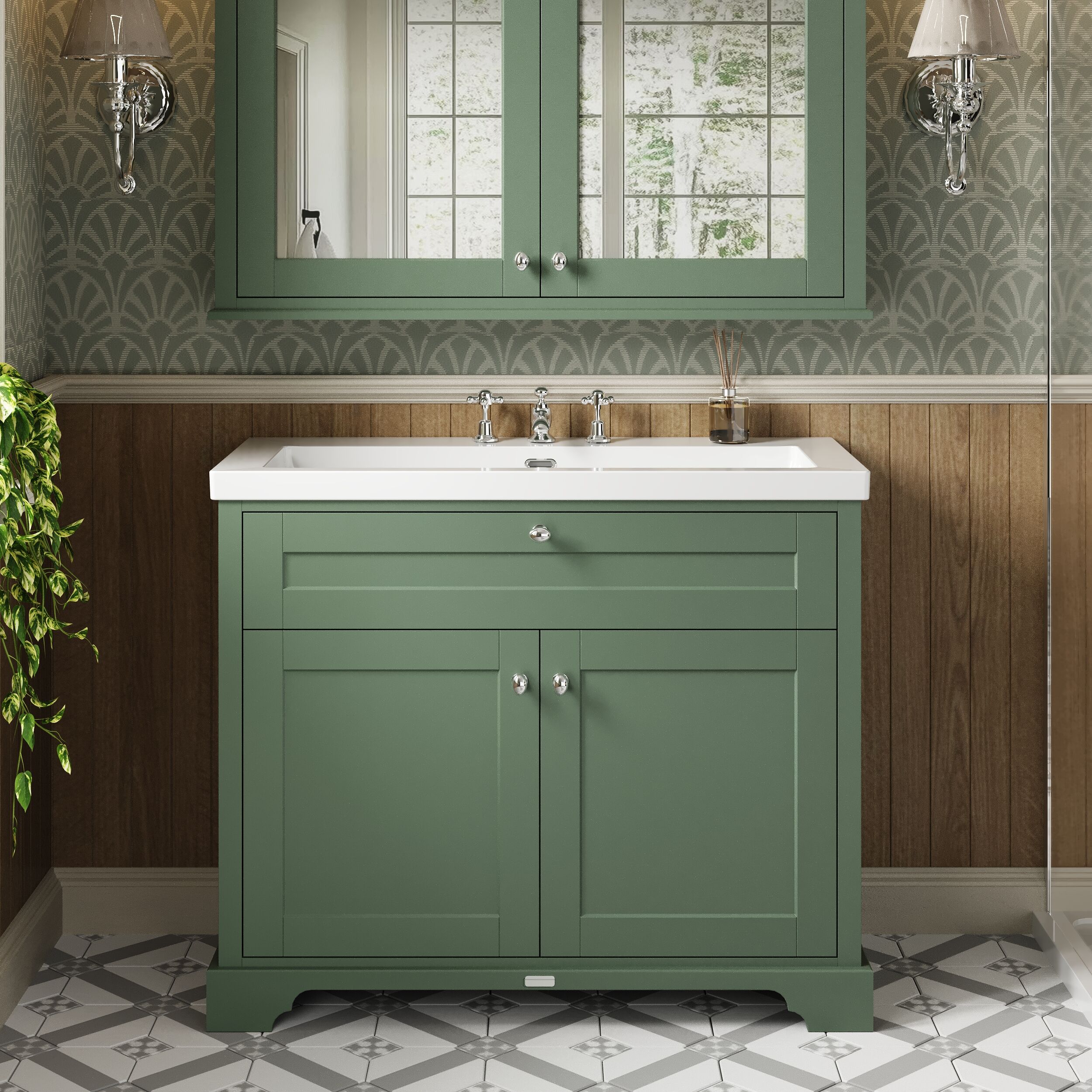 Hudson Reed Old London 1000mm 2-Door Unit & Contemporary Fireclay Basin 3TH - Hunter Green