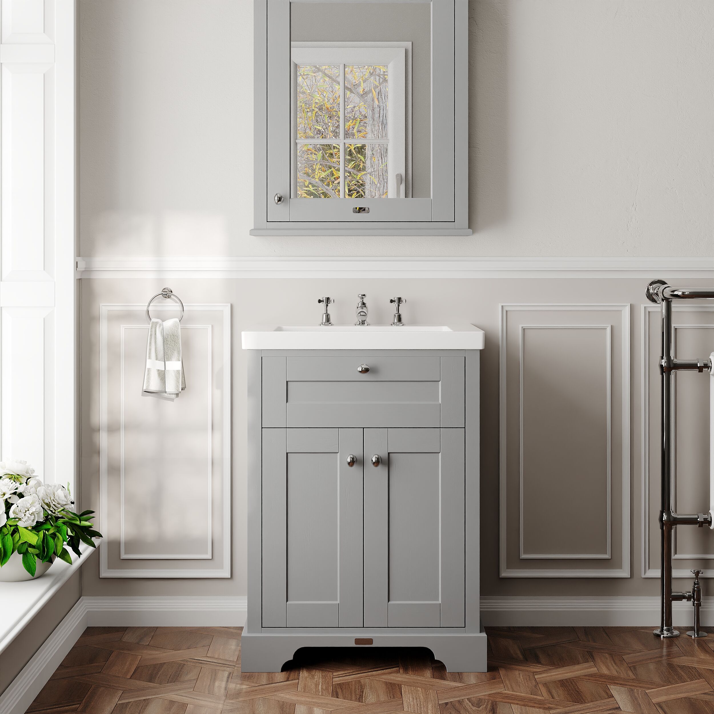 Hudson Reed Old London 600mm 2-Door Unit & Contemporary Fireclay Basin 3TH - Storm Grey