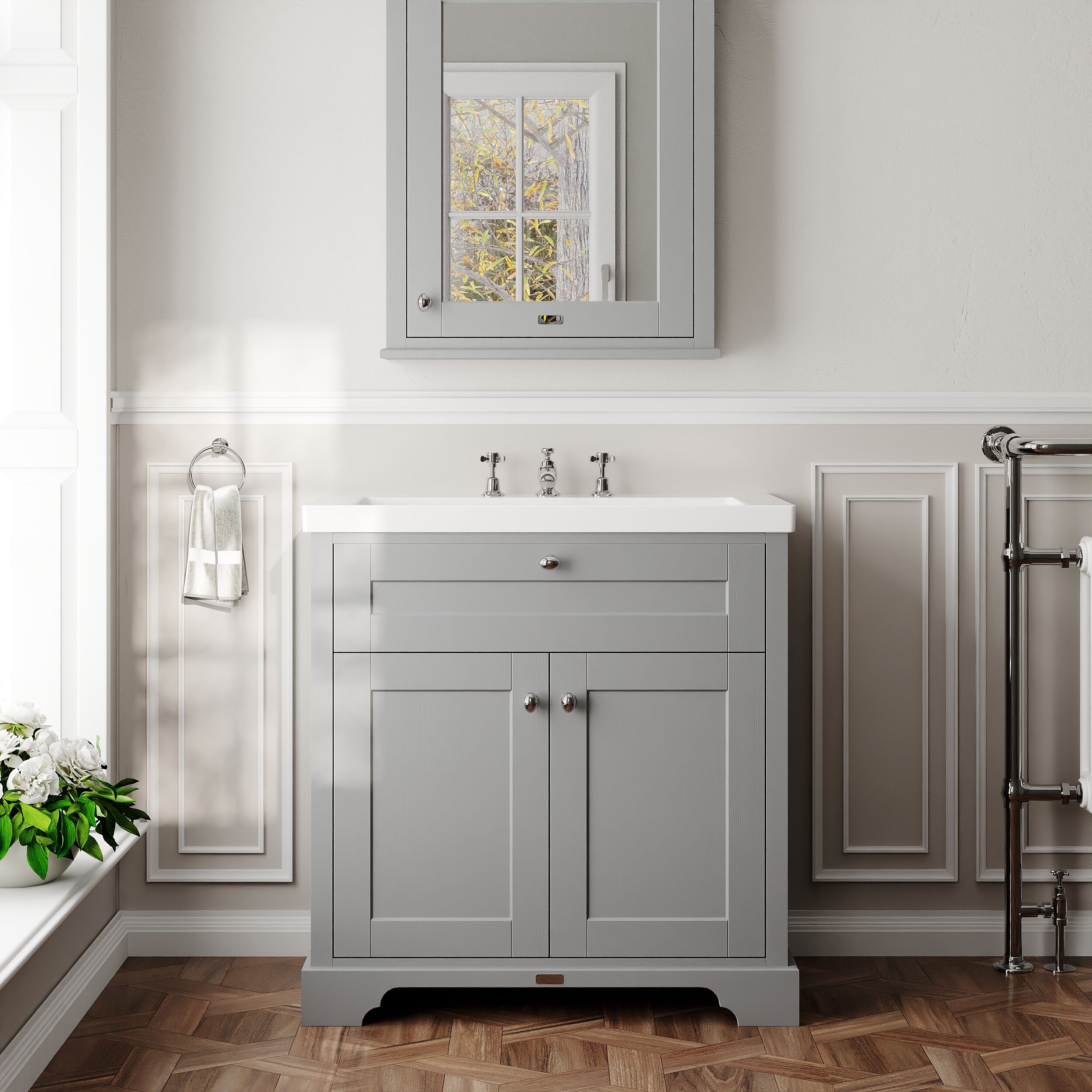 Hudson Reed Old London 800mm 2-Door Unit & Contemporary Fireclay Basin 3TH - Storm Grey