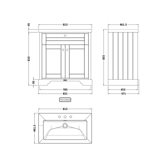 Old London 800mm 2-Door Unit & Contemporary Fireclay Basin 3TH