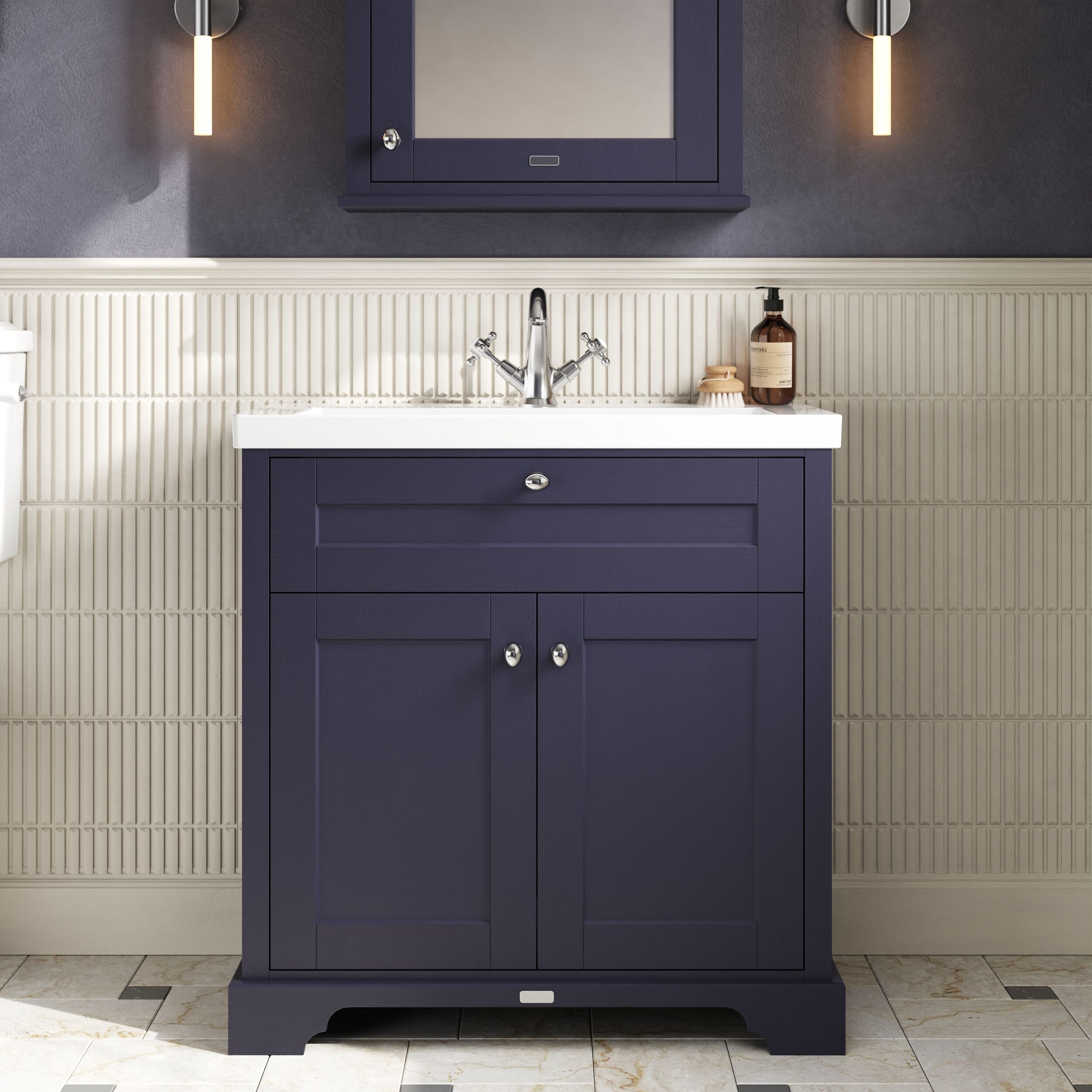 Hudson Reed Old London 800mm 2-Door Unit & Contemporary Fireclay Basin 3TH - Twilight Blue