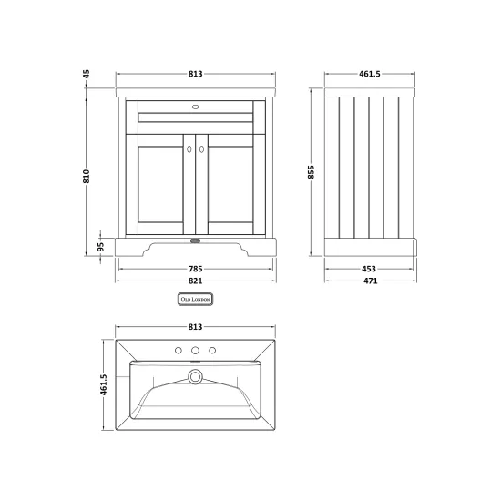 Hudson Reed Old London 800mm 2-Door Unit & Contemporary Fireclay Basin 3TH - Hunter Green