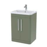 Nuie Parade 600mm Satin Green Floor Standing 2 Door Vanity Unit With Polymarble Basin