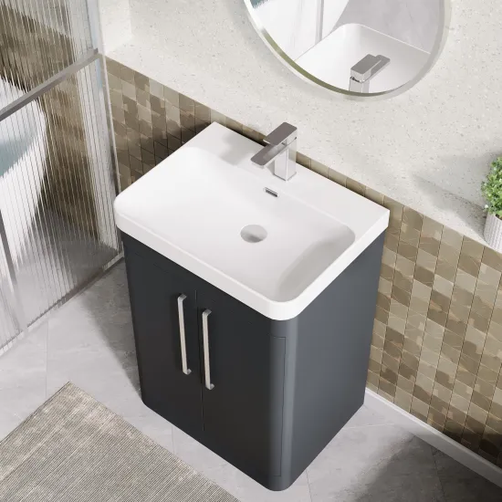 Nuie Parade 600mm Soft Black Floor Standing 2 Door Vanity Unit with Thin Edge Ceramic Basin