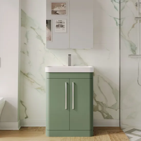 nuie Parade Floor Standing 2 Door Vanity Basin Unit & Thin Edge Ceramic Basin, 600mm - Satin Green