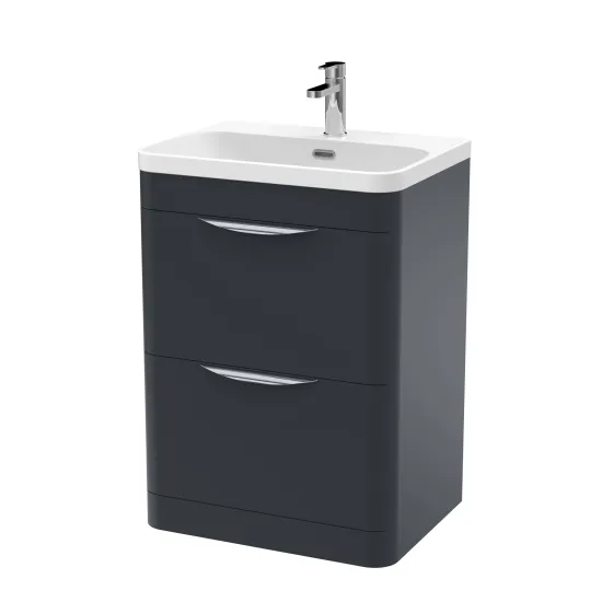 nuie Parade Floor Standing 2 Drawer Vanity Basin Unit & Thin Edge Ceramic Basin, 600mm - Soft Black
