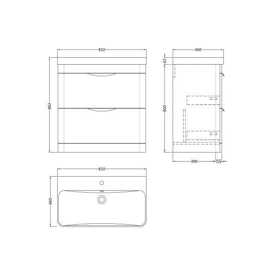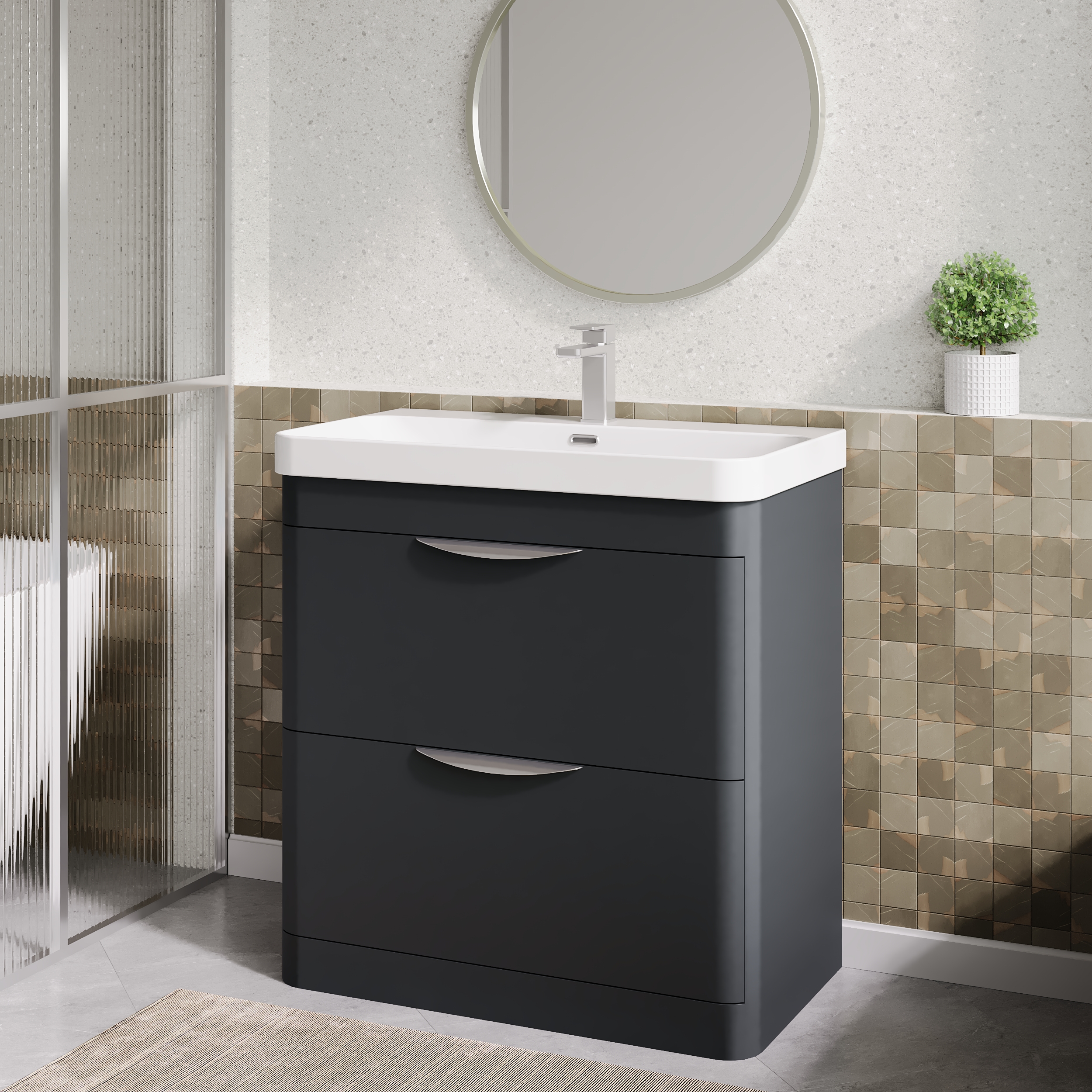Nuie 800mm Soft Black Floor Standing 2 Drawer Vanity Basin Unit