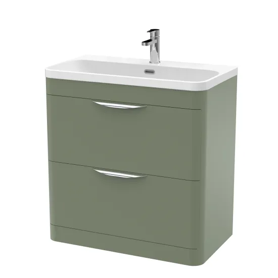 nuie Parade Floor Standing 2 Drawer Vanity Basin Unit & Thin Edge Ceramic Basin, 800mm - Satin Green