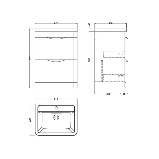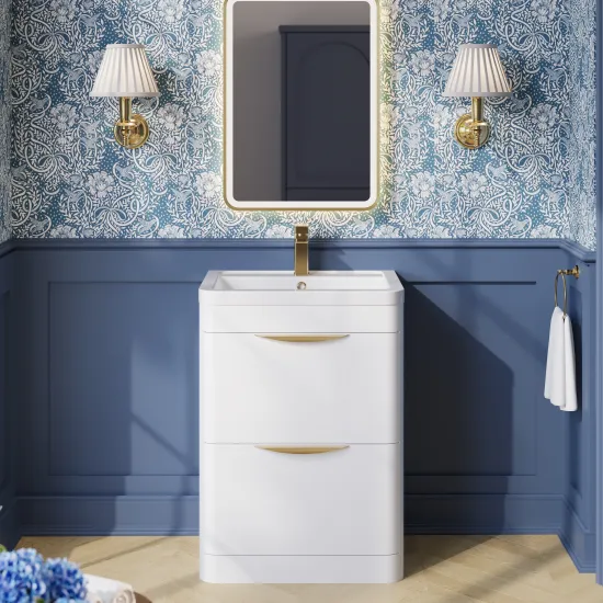 Nuie Athena 600mm Gloss White Floor Standing 2 Drawer Vanity Unit With Basin