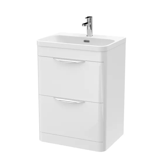 nuie Parade Floor Standing 2 Drawer Vanity Unit with Thin Edge Ceramic Basin 600mm - Gloss White