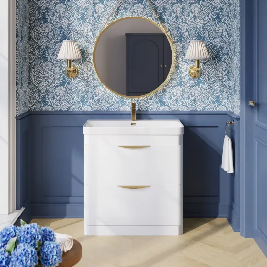 nuie Parade Floor Standing 2 Drawer Vanity Unit with Thin Edge Ceramic Basin 800mm - Gloss White