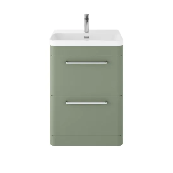 Hudson Reed Solar 600mm Floor Standing 2-Drawer Unit and Thin Edge Ceramic 1 Tap Hole Basin - Fern Green