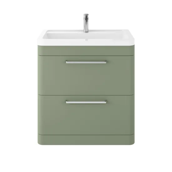 Hudson Reed Solar 800mm Floor Standing 2-Drawer Unit and Ceramic 1 Tap Hole Basin - Fern Green