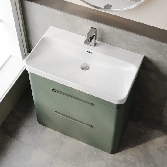 Hudson Reed Solar 800mm Floor Standing 2-Drawer Unit and Thin Edge Ceramic 1 Tap Hole Basin - Fern Green